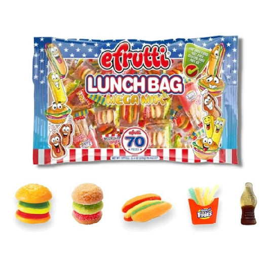 Efrutti Gummy Candy, Mega Lunch Bag and Bakery Shoppe Mega Mix Gummies, Variety Pack, Total of 140 Pieces, Gluten Free, Fat Free, Dairy Free, and Nut Free