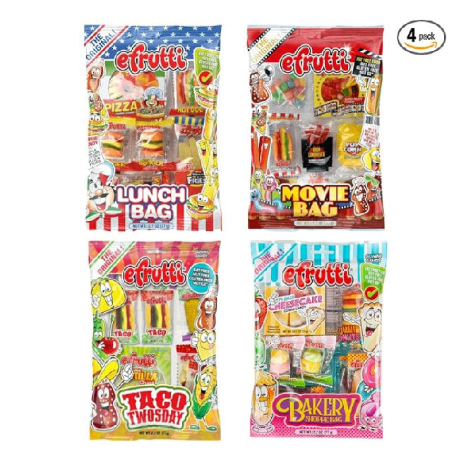 eFrutti Gummy Candy Variety Pack, Movie Bag with Gummy Pizza, Lunch Bag, Sour Lunch Bag, and Bakery Shoppe Gummy Food Bag, 2.2 Ounce (Pack of 4) Gummi Variety