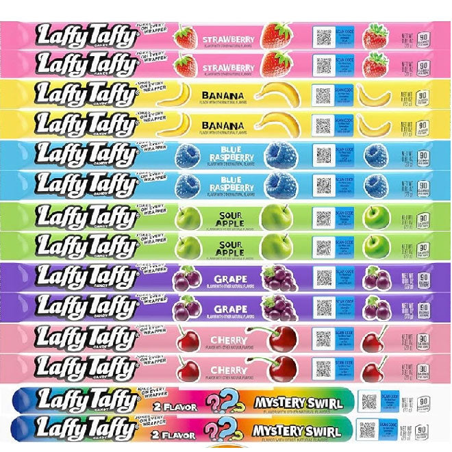 Blue Raspberry, Cherry, Grape, Mystery Swirl, and Sour Apple Flavors: Enjoy the tangy, sweet taste of these classic Laffy Taffy flavors.Once upon a candy-coated dream, our family embarked on a mission to create a sweet legacy. Since all our kids like different candy, we decided we needed to create incredibly mouth-watering candy mixes to solve this problem. From our hands to local smiles, this passion sparked a family-owned empire. Today, our candy castle is the Queen Jax brand which stands as a testament to dreams and the enduring magic of family traditions.