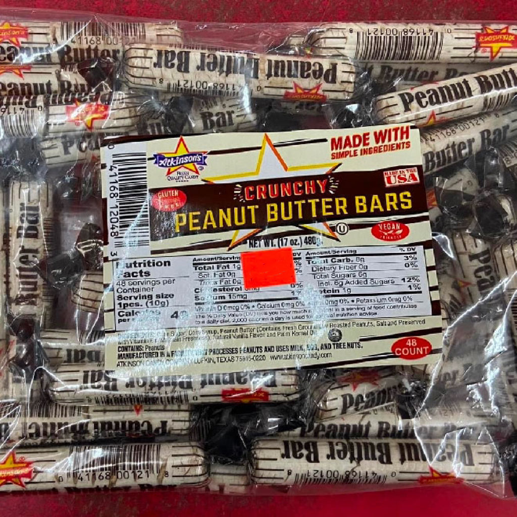 Atkinson's Peanut Butter Crunchy Candy Bars; 2-pound bulk pack; approximately 140 pieces per order (individually wrapped)