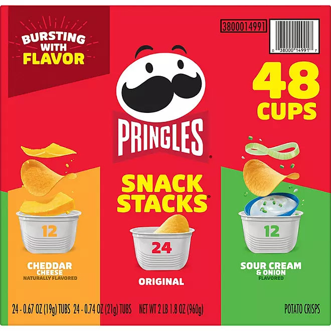 Variety pack includes: Original Pringles, Cheddar Cheese Flavored Pringles, Sour Cream & Onion Flavored Pringles