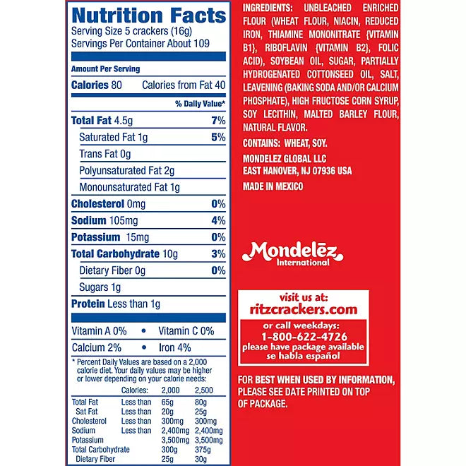 One 61.65-ounce family size box with 18 sleeves of RITZ Original Crackers (packaging may vary)